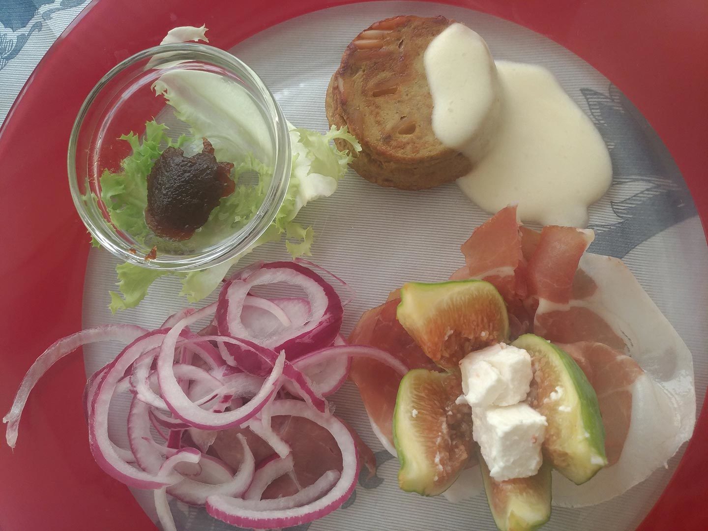 una colazione abbondante dolce e salata, con caffe, cappuccini e the caldi serviti al tavolo, brioches, panini, confetture, cioccolata, salumi, formaggi…